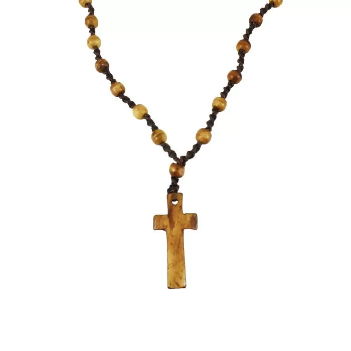 Athos cross with a cord decorated with beads.Available in black, brown and white.