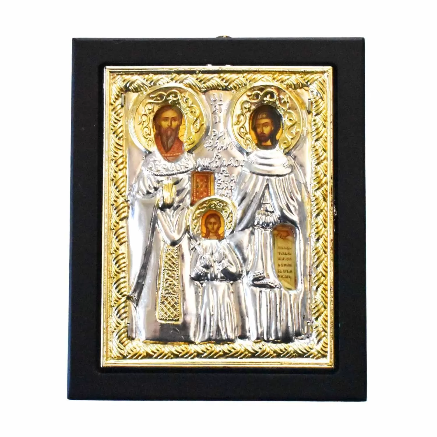 This is an exceptional, handmade icon, ideal for any home or as a gift of great spiritual significance. The icon is silver-plated and is framed in high-quality black wood, which guarantees great durability over time and ensures that it will never tarnish, maintaining the brilliance of the metal. This icon combines tradition with modern know-how in metal processing.