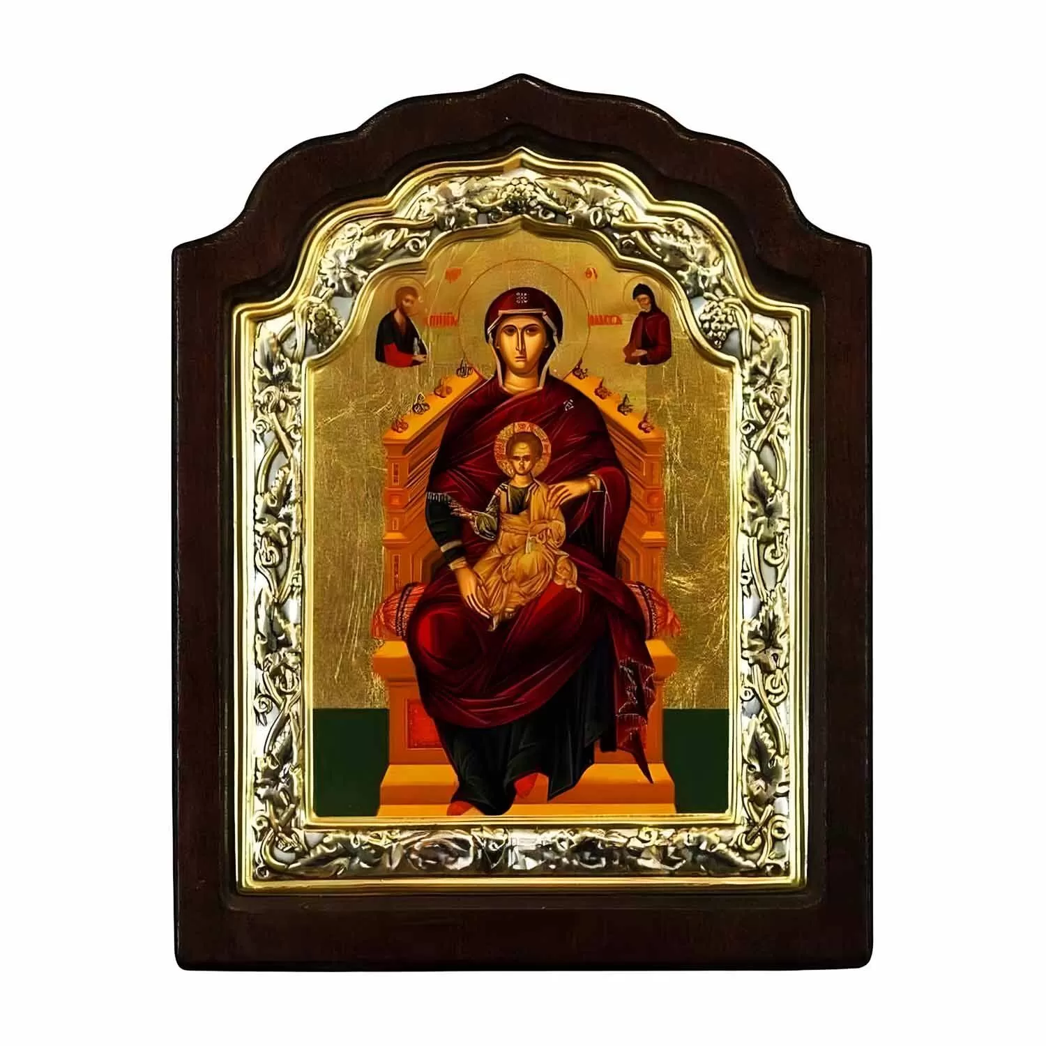This beautiful icon presents the Virgin Mary Enthroned, a reproduction created with reverence and attention to detail. Serving as a source of spiritual reflection, this piece embodies a rich sacred heritage.