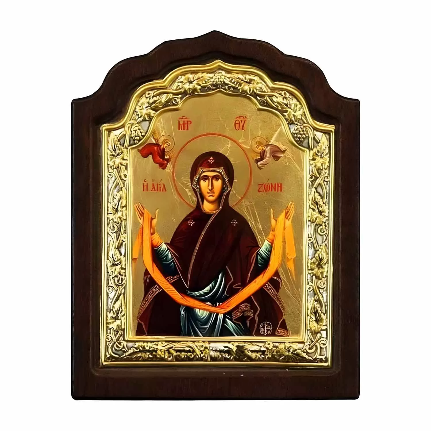 This beautiful icon depicts the Virgin Mary's Holy Girdle (Agia Zoni) and is crafted according to traditional Byzantine methods. A print on canvas is carefully applied to a durable wooden backing, ensuring the icon's lasting beauty and spiritual presence.