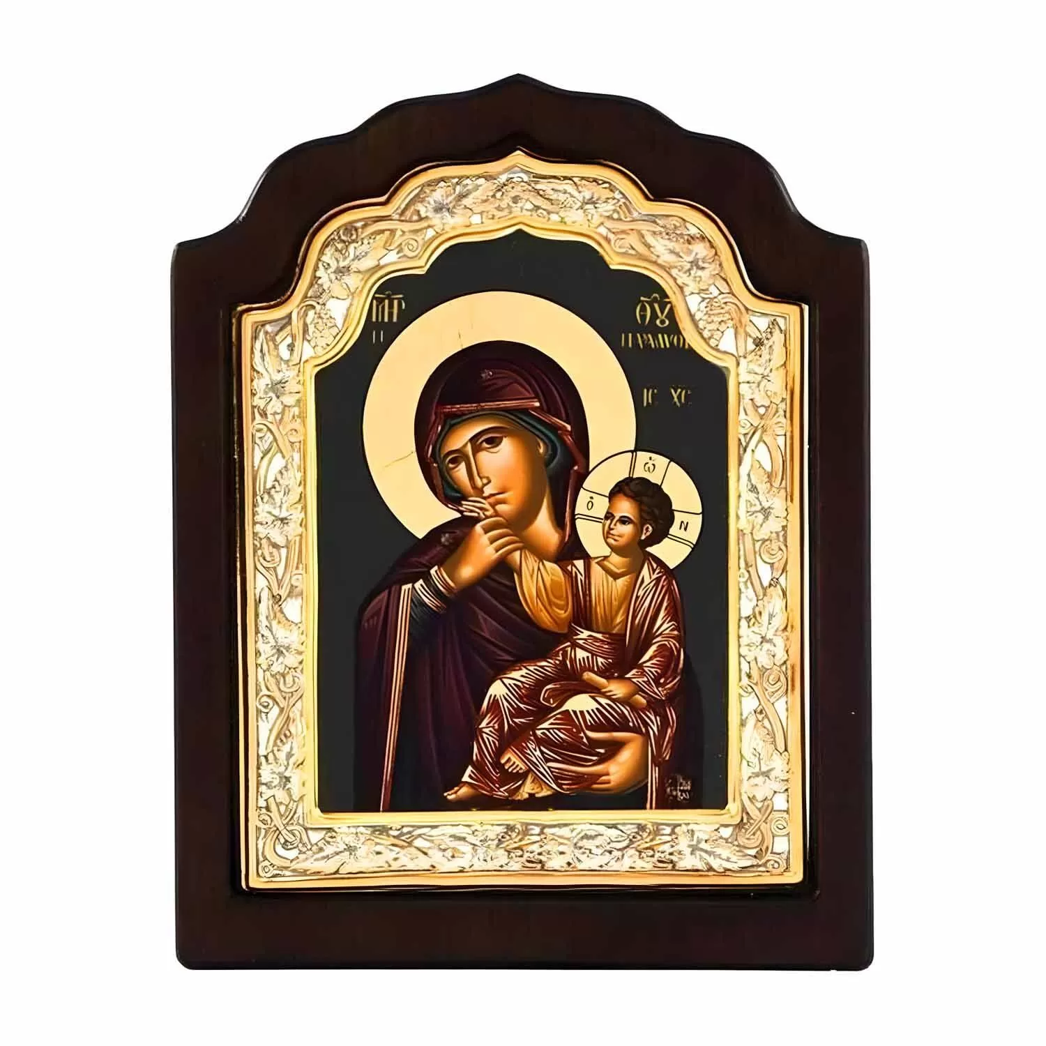 This beautiful icon depicts the Virgin Mary Paramithia, a powerful symbol of protection and comfort, inspired by the miraculous icon of Vatopedi Monastery. The icon is meticulously crafted using traditional techniques to ensure both its spiritual significance and its lasting beauty.