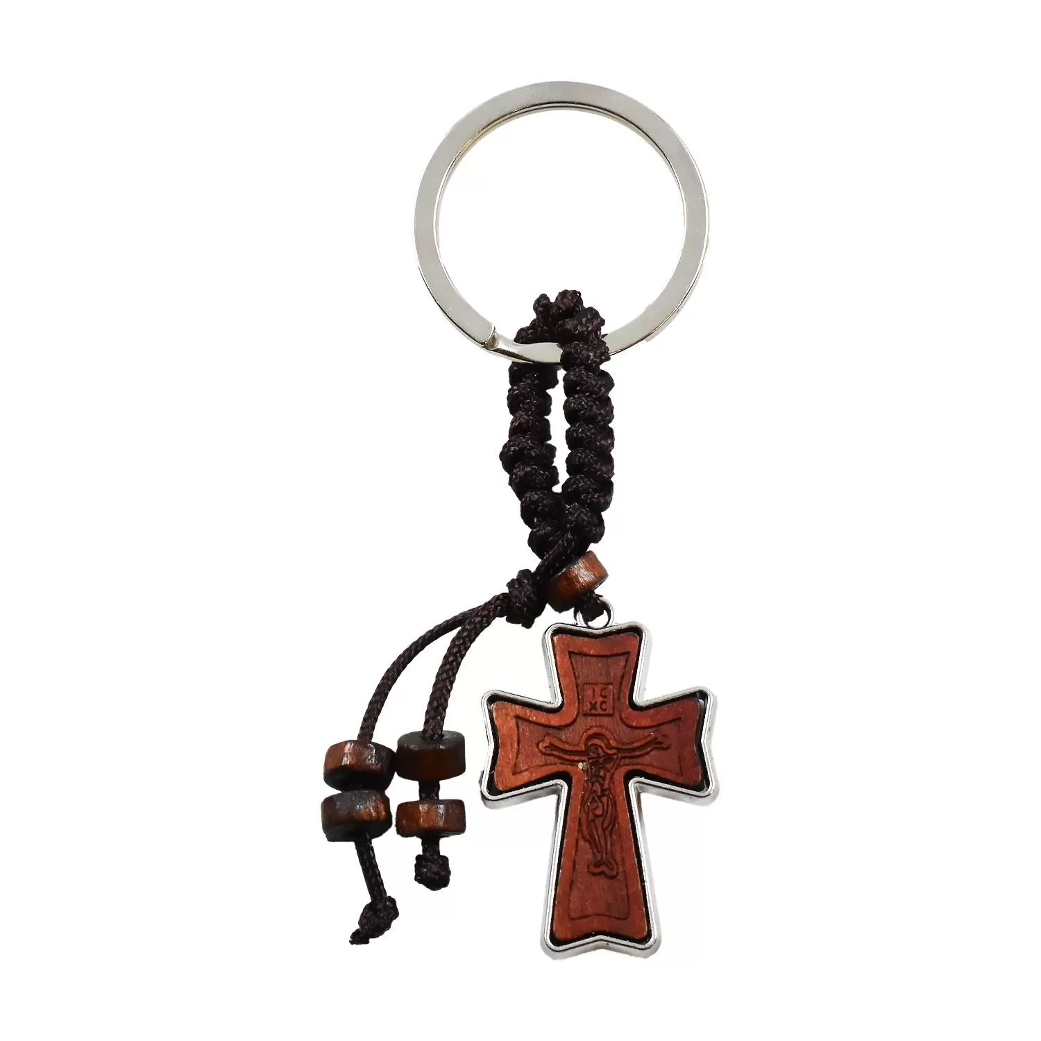 Αυτό το όμορφο μπρελόκ διπλής όψης αποτελεί ένα διακριτικό και πρακτικό θρησκευτικό ενθύμιο. Ο σταυρός είναι κατασκευασμένος από καφέ ξύλο και διαθέτει ένα κομψό μεταλλικό περίγραμμα που αναδεικνύει το σχήμα του.Ο κρίκος συγκράτησης ενώνεται με τον σταυρό μέσω ενός εντυπωσιακού καφέ πλεξίματος που θυμίζει κόμπους κομποσχοινιού, προσδίδοντας παραδοσιακό και ιδιαίτερο χαρακτήρα στο μπρελόκ. Η διακόσμηση ολοκληρώνεται με μικρές, ξύλινες χάντρες που κρέμονται από το κορδόνι. Είναι ιδανικό για να διακοσμεί τα κλειδιά, την τσάντα ή το σακίδιό σας, φέρνοντας παράλληλα έναν συμβολισμό πίστης στην καθημερινότητά σας.