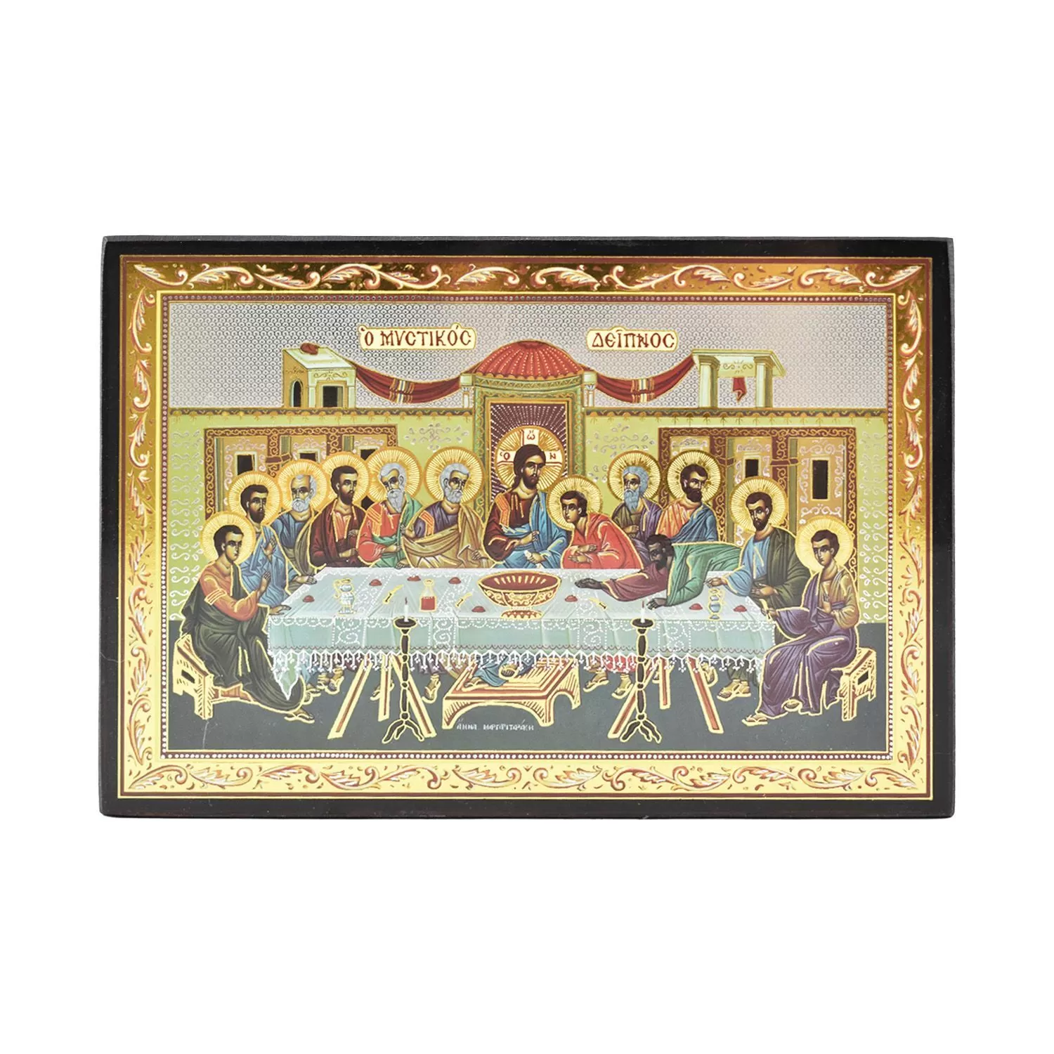 Εικόνα του Μυστικού Δείπνου, φιλοτεχνημένη σε αργυροχρυσοτυπία μια τεχνική υψηλής ποιότητας που προσφέρει εξαιρετική ευκρίνεια, λαμπρότητα και διαχρονική αντοχή. Η παράσταση είναι αποτυπωμένη πάνω σε ξύλο υψηλής ποιότητας με χειροποίητο φινίρισμα και προσεγμένη λεπτομέρεια.
