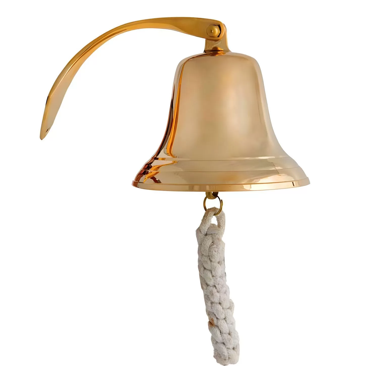 Αυτή η μπρούτζινη καμπάνα παρουσιάζεται με ένα χρυσαφί γυαλιστερό φινίρισμα. Η καμπάνα έχει κλασικό κωδωνοειδές σχήμα, στενεύει προς την κορυφή και ανοίγει ομαλά προς τη βάση με ένα διακριτικό χείλος. Ενσωματωμένη στο πάνω μέρος, υπάρχει μια μπρούτζινη βάση τοίχου, η οποία είναι καμπυλωτή και προεκτείνεται προς τα πίσω, εξασφαλίζοντας την ανάρτηση. Από το κάτω μέρος της καμπάνας κρέμεται ένα παχύ, ανοιχτόχρωμο και πλεγμένο σχοινί, σχεδιασμένο για την ενεργοποίηση του ήχου της. Η κατασκευή της είναι εξ ολοκλήρου από μπρούτζο, ένα υλικό γνωστό για την αντοχή του.