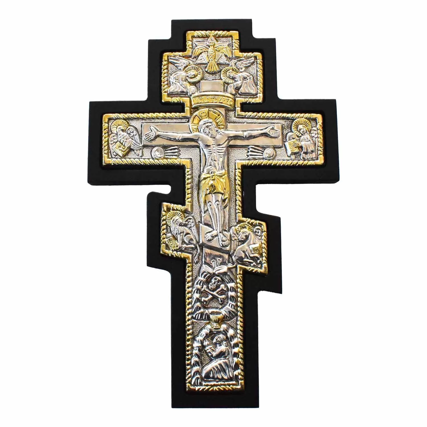 Εξαιρετικός ορθόδοξος χειροποίητος σταυρός με τον Εσταυρωμένο, ιδανικός για κάθε σπίτι ή ως ένα δώρο μεγάλης πνευματικής σημασίας. Ο σταυρός είναι επάργυρος και φέρει πλαίσιο σε μαύρο ξύλο υψηλής ποιότητας, το οποίο εγγυάται μεγάλη αντοχή στον χρόνο και εξασφαλίζει ότι δεν θα μαυρίσει ποτέ, διατηρώντας τη λαμπρότητα του μετάλλου. Συνδυάζει την παράδοση με τη σύγχρονη τεχνογνωσία στην επεξεργασία μετάλλου.