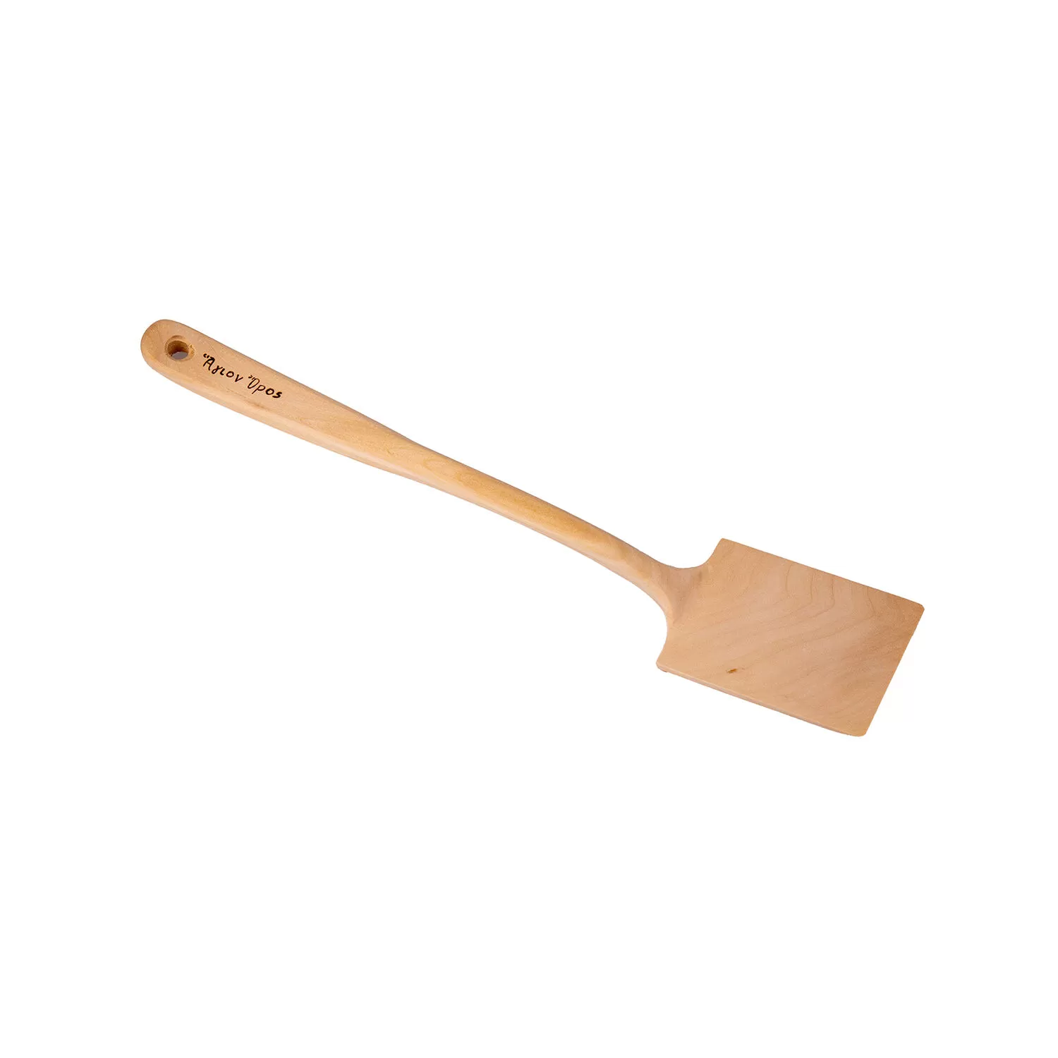 Αυτή η σπάτουλα, έχει κοπεί στην κατάλληλη εποχή και βραστεί σε αργή φωτιά, σύμφωνα με τις παραδοσιακές τεχνικές του Αγίου Όρους. Στη συνέχεια, αφού στεγνώσει, σκαλίζεται με υπο και μεράκι από τους πατέρες εδώ στο Άγιον Όρος. Έχει μήκος 35 εκ. και φάρδος 8 εκ. Είναι ιδανική για να ανακατεύετε και να σερβίρετε το φαγητό σας.