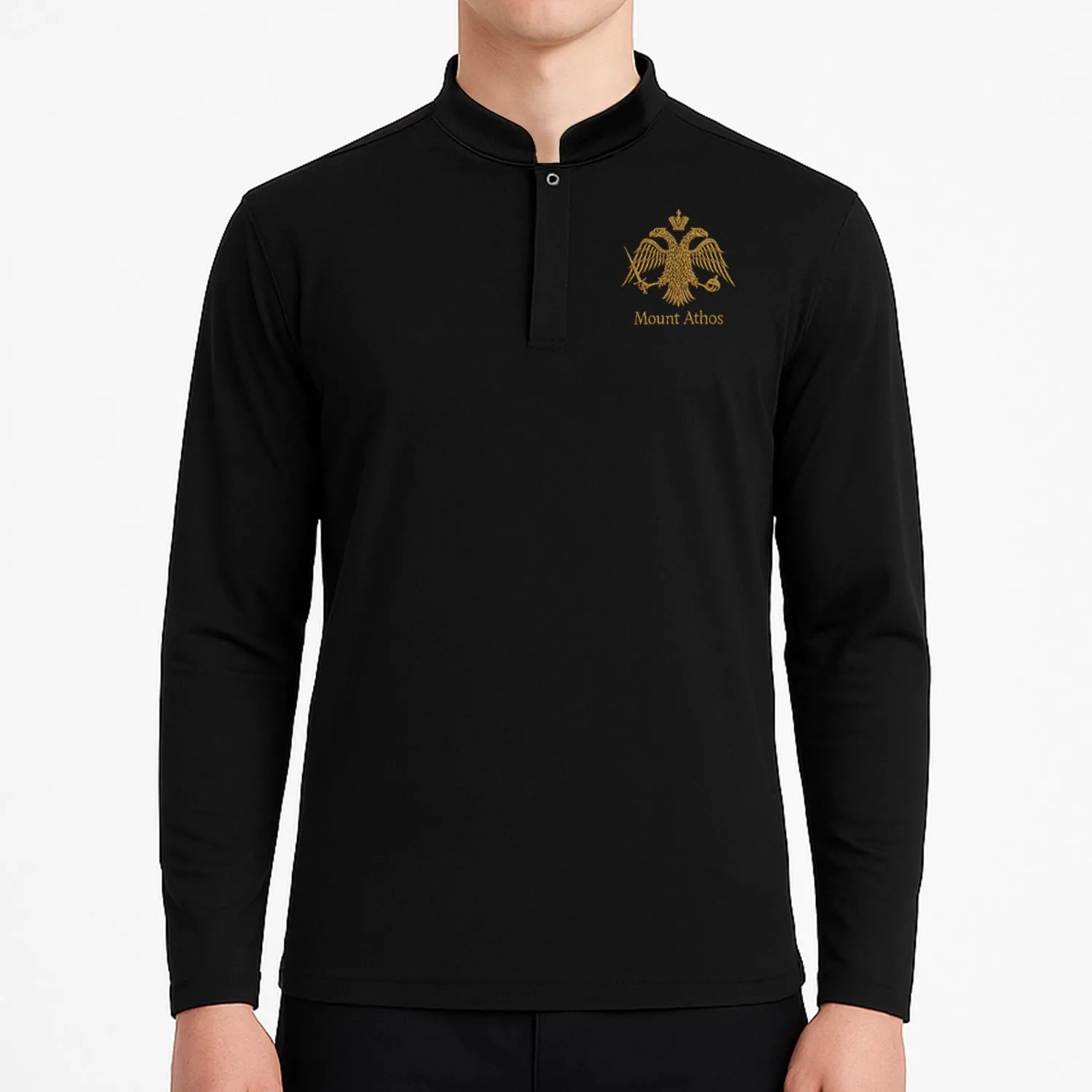 Αυτή η μακρυμάνικη ανδρική μπλούζα τύπου T-shirt είναι ιδανική για όσους αναζητούν την άνεση και το διακριτικό στυλ, με πνευματικό χαρακτήρα. Το χειροποίητο χρυσό κέντημα του Δικέφαλου Αετού με την επιγραφή "Mount Athos" (Άγιον Όρος) προσδίδει μοναδική πολυτέλεια και ξεχωριστό χαρακτήρα, αναδεικνύοντας την πίστη και την παράδοση.
